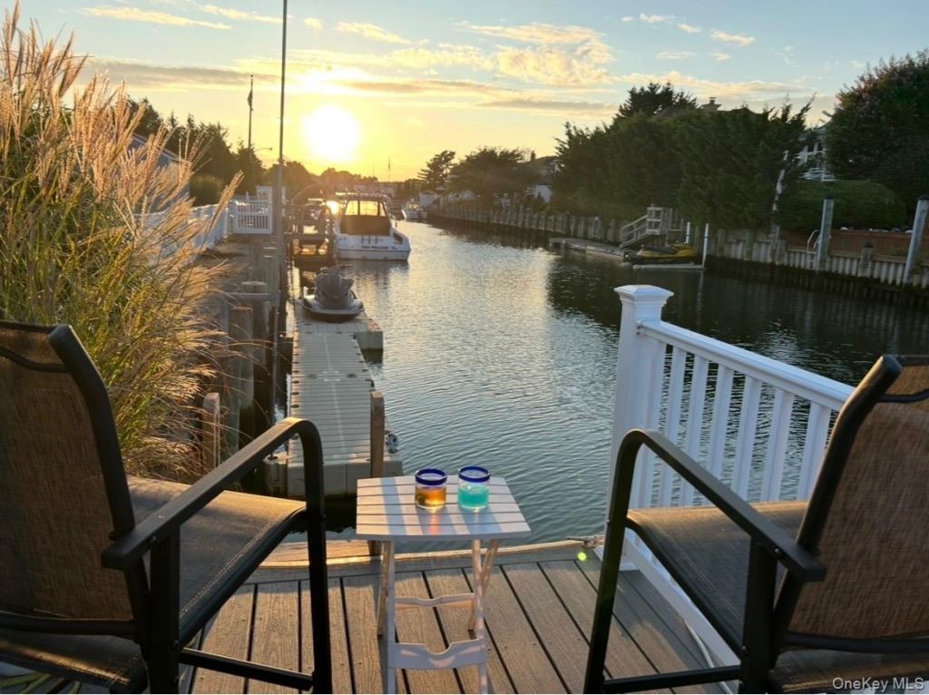 Beautiful updated high ranch in Massapequa Shores. Located just houses from the beach. This home is on a deep water canal, just minutes to the bay. The property size is 70x165 with plenty of room for a pool. Views from the front windows of the Jones Beach Theatre. Wood burning fireplace in the den, fully fenced yard. Oversized 2 car garage with epoxy floor. New kitchen with Cafe appliances, 6 burner stove with double oven and herringbone porcelain tile floors. Kitchen and main bedroom have access to a new trex deck. Refinished hardwood floors, new railings, new bathroom with smart toilet. Cedar closet with plenty of storage. The bulkhead was refaced in 2022. The interior of the house was repainted in 2022. There is an 8x15 vinyl shed. Inground sprinklers. This house is turn key and ready for the upcoming season, just bring your boat!